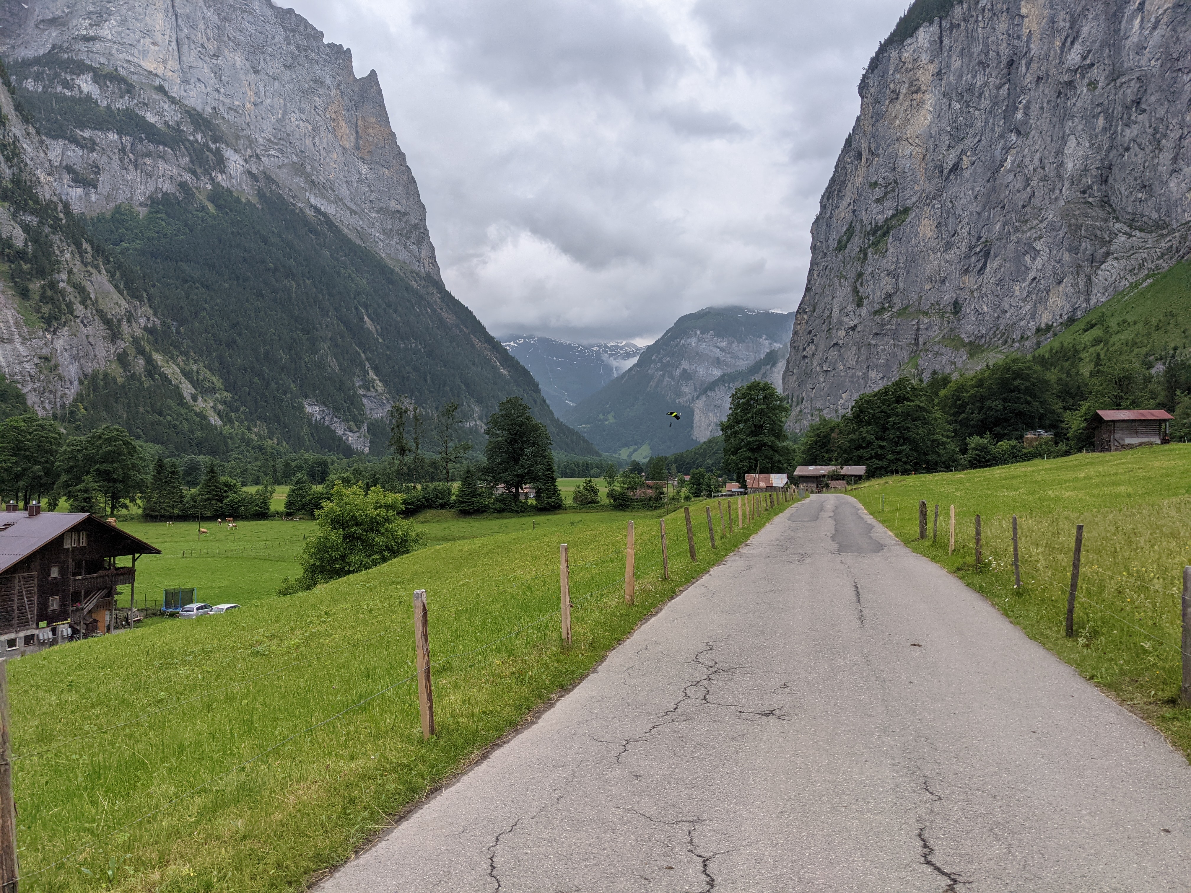 Pati Lauterbrunnen būtībā atrodas kalnu ielejā. Nometu savas mantas un dodos pastaigā pa aleju.