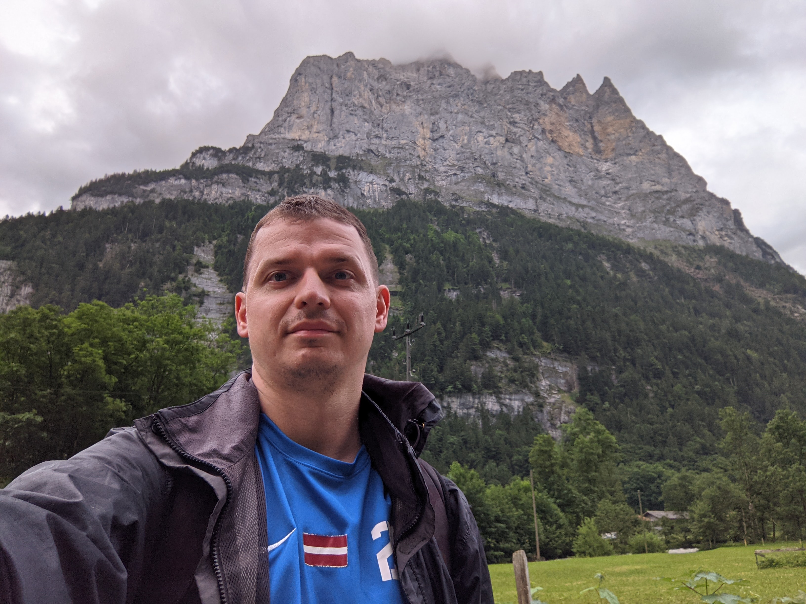 Zini!? Ir tāda interesanta sajūta. Es biju sev nostādījis mērķi “Ar savu bumeri tikt līdz Šveicei un pabūt Alpu kalnos”. Un šeit es esmu pilnīgi viens, Alpu kalnu pļavā.